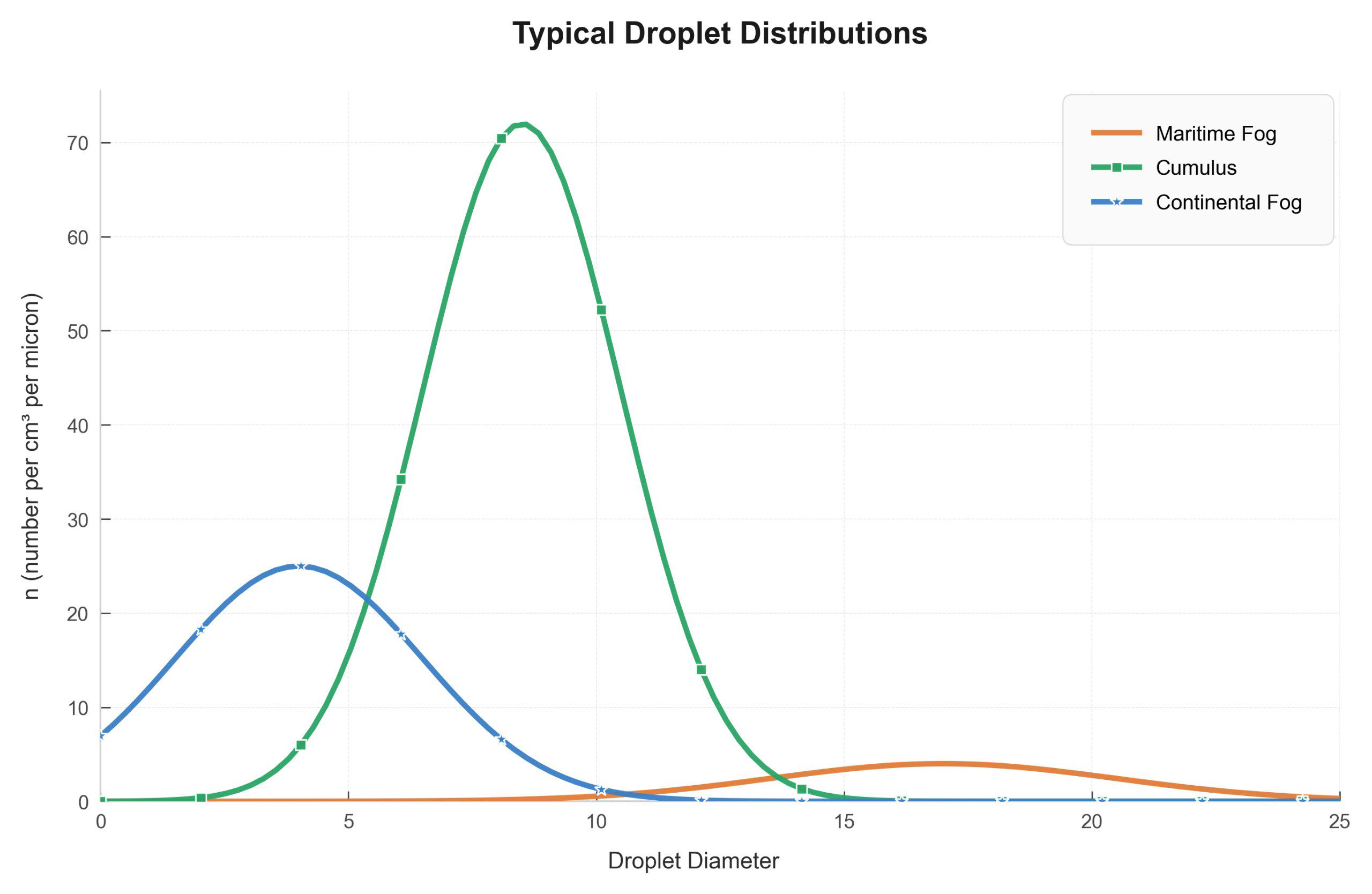 - Marine fogs typically have larger droplets, but fewer droplets per volume of air